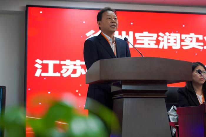 董事局监事会副主席、徐州宝润实业上市集团党委副书记、江苏树恩教育科技集团常务副总经理花纯勇讲话。