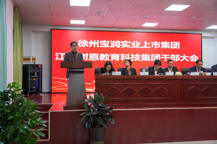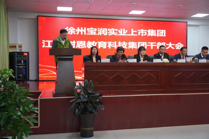 2020年10月10日,徐州宝润实业上市集团、江苏树恩教育科技集团干部大会在徐州市树恩外国语小学举行。徐州宝润实业上市集团董事局主席、董事长张爱平出席会议并作重要讲话。集团董事局成员及下属产业集团经营团队、职能部门主要负责人参加会议。