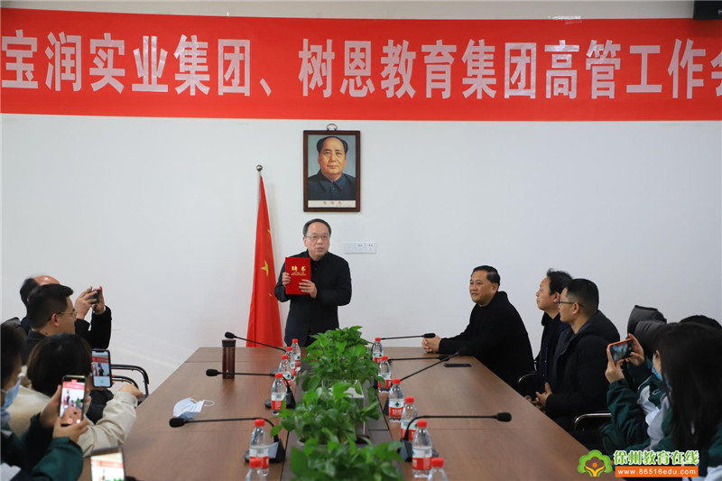 宝润实业集团董事局主席助理蒋业兴,宝润实业集团战略发展部部长魏子翔,江苏树恩教育科技集团总经理郭晏彤、副总经理张庆东,树恩高级中学校长钱益民,高中复读学校校长杜元鹏等有关人员参加了会议。